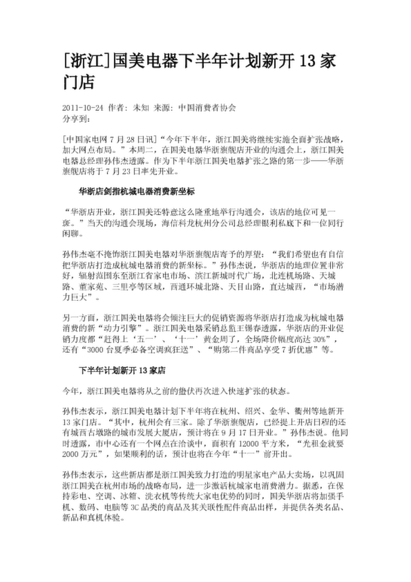 [浙江]國(guó)美電器下半年計(jì)劃新開(kāi)13家門(mén)店
