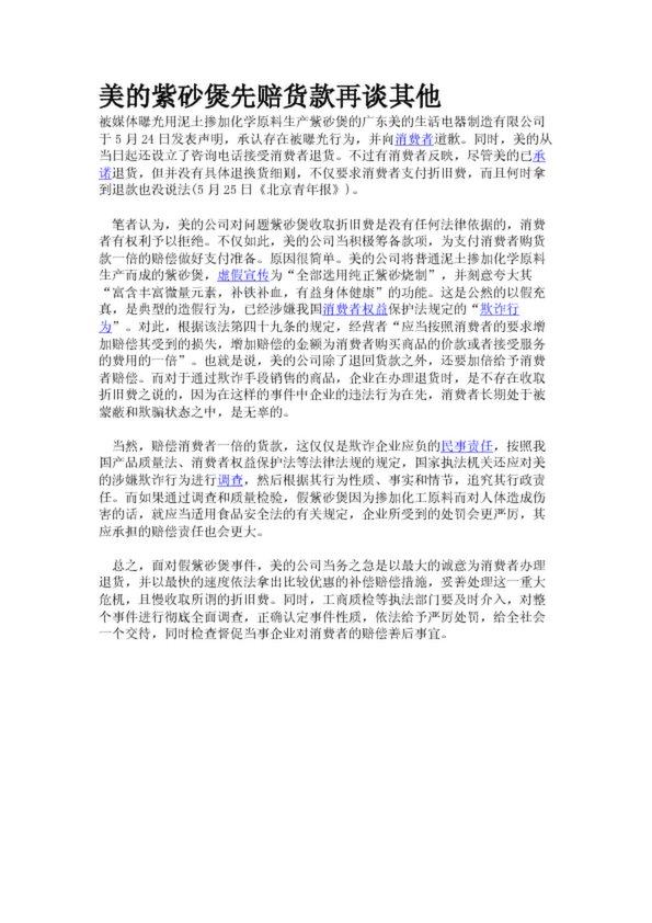 美的紫砂煲先賠貨款再談其他