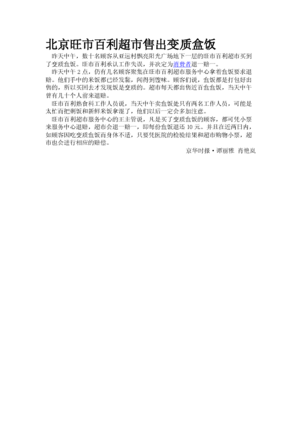 北京旺市百利超市售出變質(zhì)盒飯