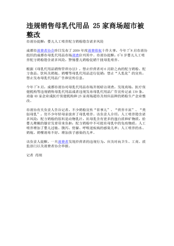 違規(guī)銷售母乳代用品 25家商場超市被整改
