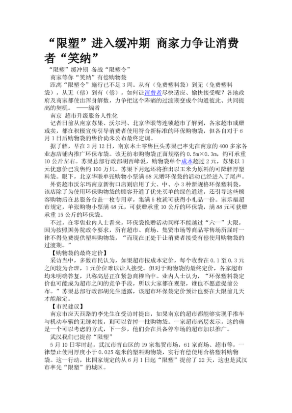 “限塑”進(jìn)入緩沖期 商家力爭(zhēng)讓消費(fèi)者“笑納”
