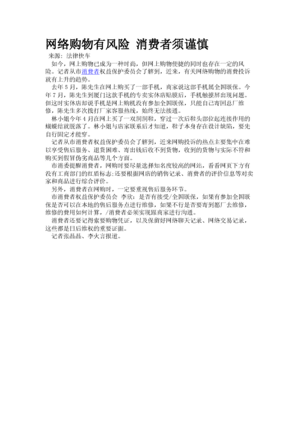 網(wǎng)絡(luò)購物有風(fēng)險 消費者須謹(jǐn)慎