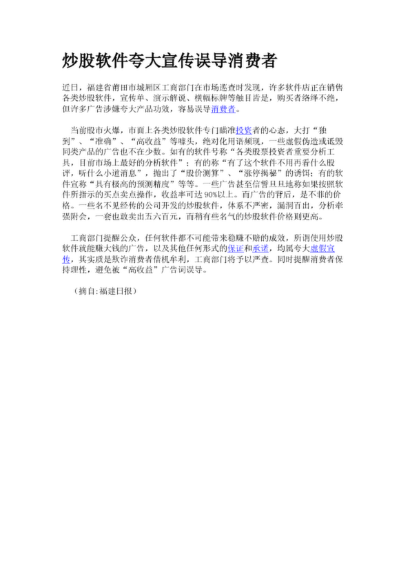 炒股軟件夸大宣傳誤導(dǎo)消費者