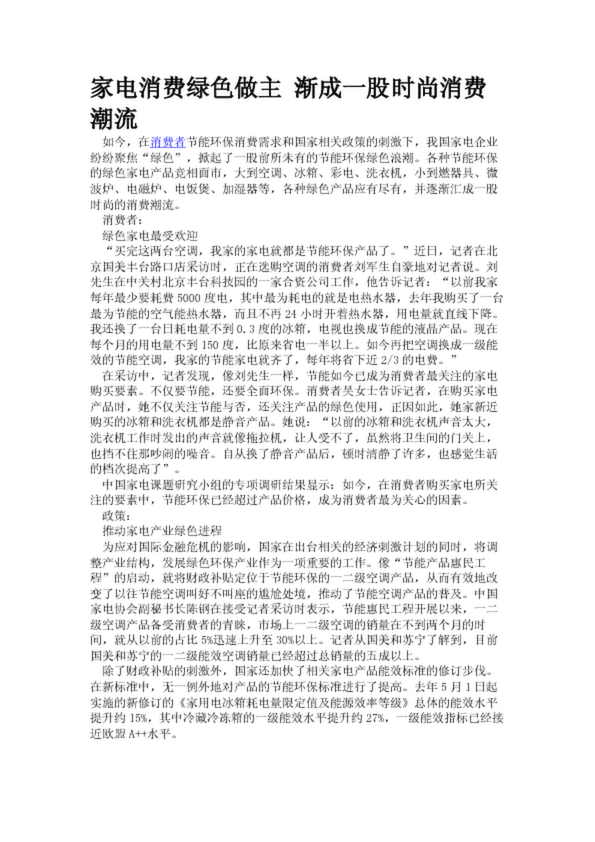 家電消費(fèi)綠色做主 漸成一股時(shí)尚消費(fèi)潮流