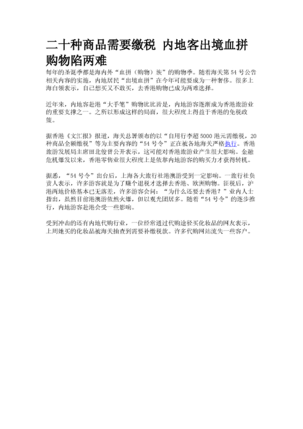 二十種商品需要繳稅 內地客出境血拼購物陷兩難