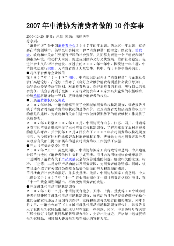 2007年中消協(xié)為消費(fèi)者做的10件實(shí)事