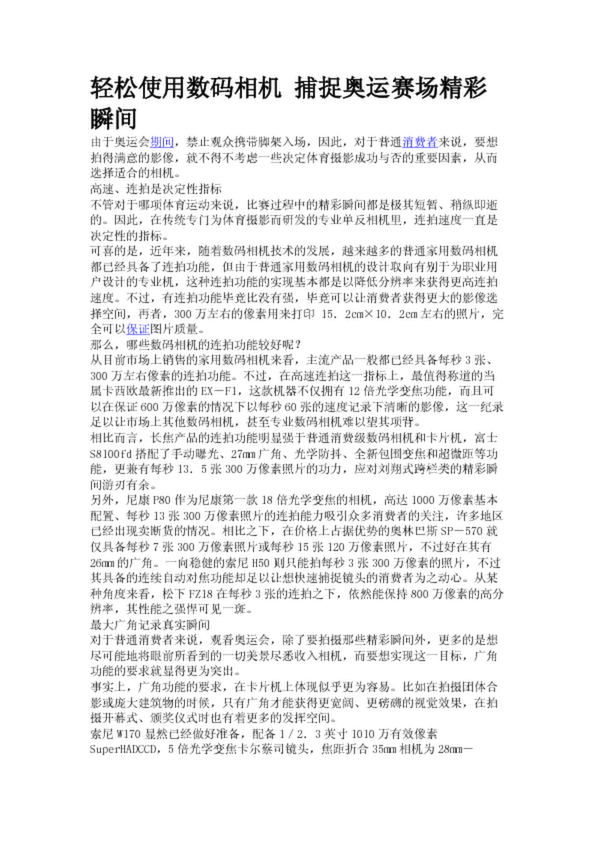 輕松使用數(shù)碼相機 捕捉奧運賽場精彩瞬間