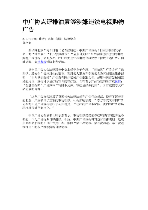 中廣協(xié)點(diǎn)評排油素等涉嫌違法電視購物廣告
