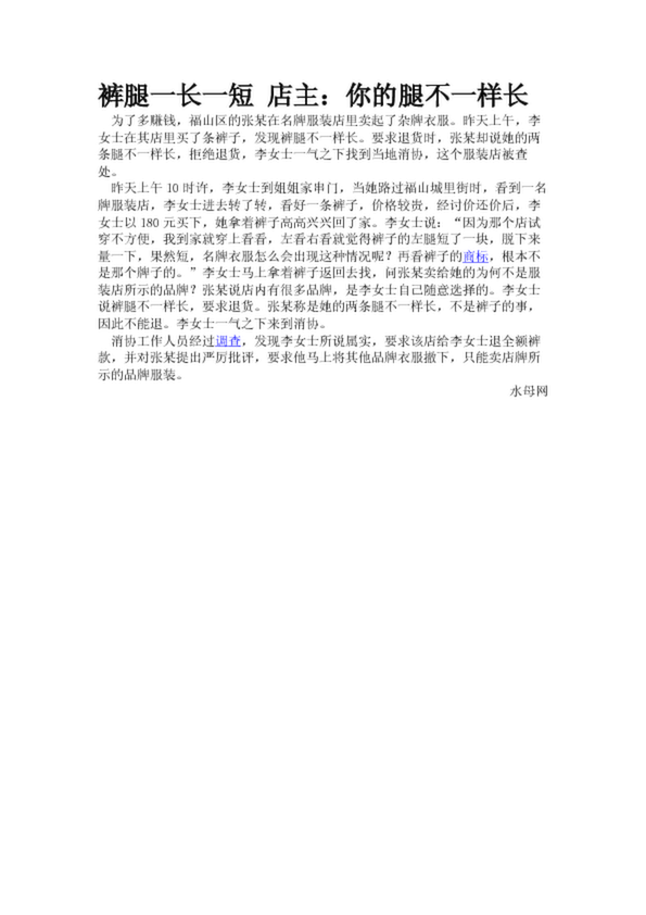 褲腿一長(zhǎng)一短 店主:你的腿不一樣長(zhǎng)