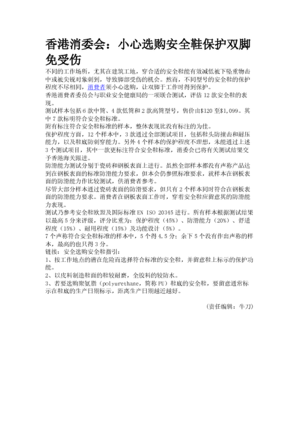 香港消委會:小心選購安全鞋保護(hù)雙腳免受傷
