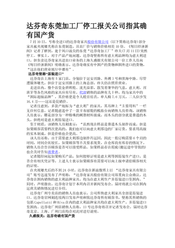 達(dá)芬奇東莞加工廠停工報(bào)關(guān)公司指其確有國產(chǎn)貨