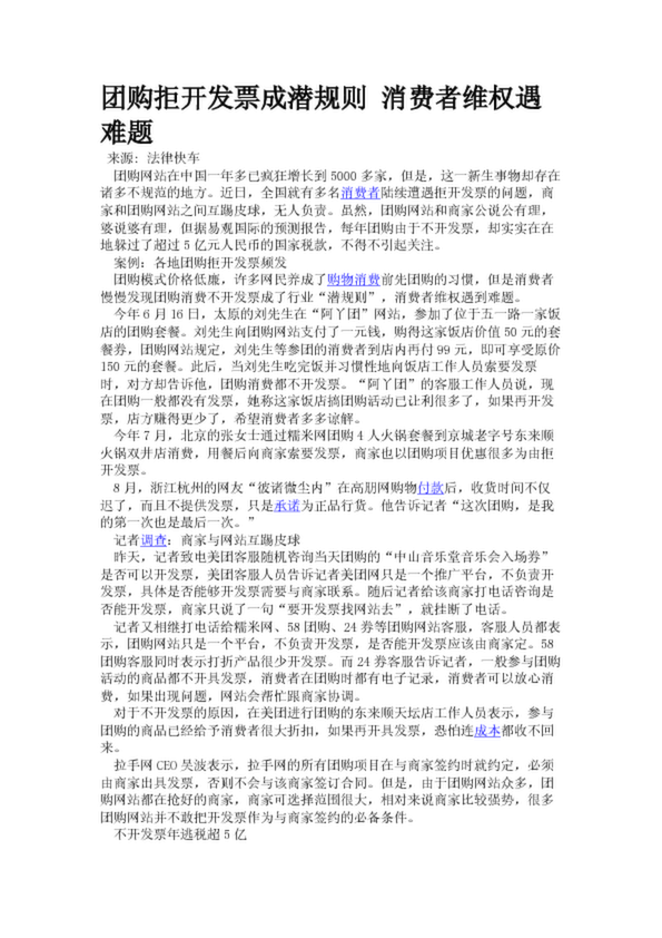 團(tuán)購(gòu)拒開發(fā)票成潛規(guī)則 消費(fèi)者維權(quán)遇難題