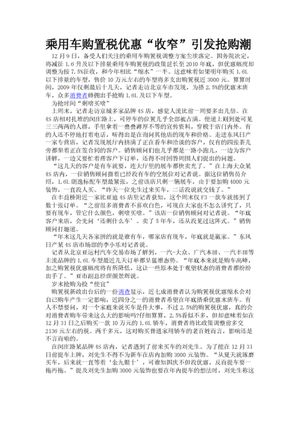 乘用車購(gòu)置稅優(yōu)惠“收窄”引發(fā)搶購(gòu)潮(24.93KB)