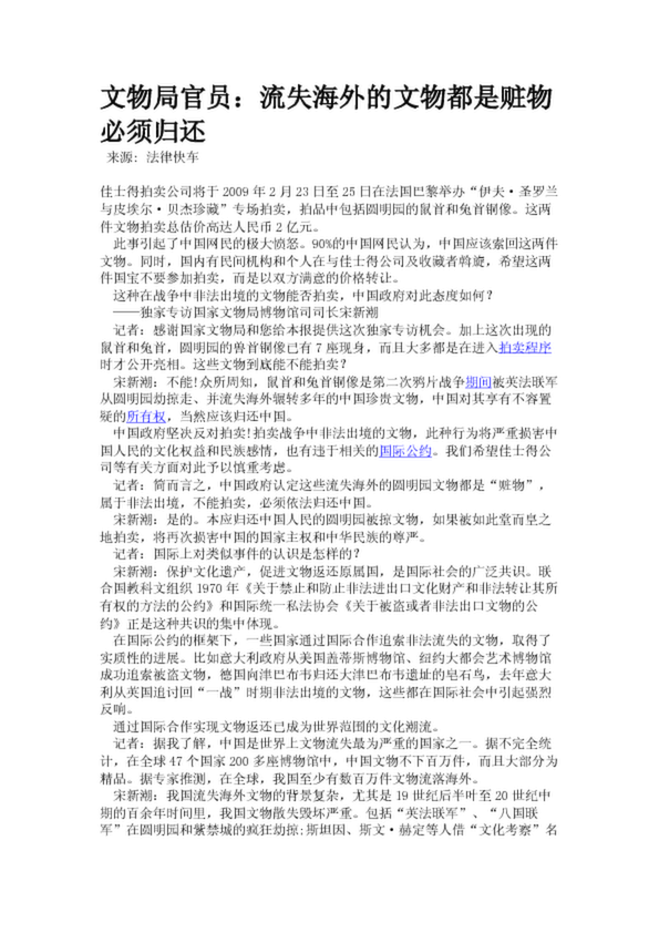 文物局官員:流失海外的文物都是贓物必須歸還(30.98KB)
