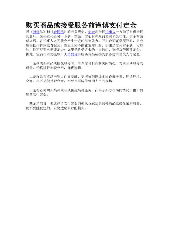 購(gòu)買商品或接受服務(wù)前謹(jǐn)慎支付定金