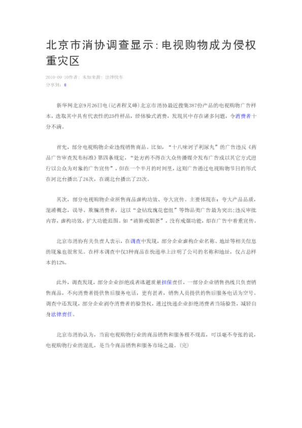 北京市消協(xié)調(diào)查顯示電視購物成為侵權(quán)重災(zāi)區(qū)