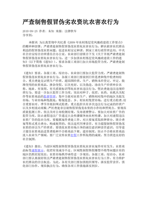 嚴(yán)查制售假冒偽劣農(nóng)資坑農(nóng)害農(nóng)行為