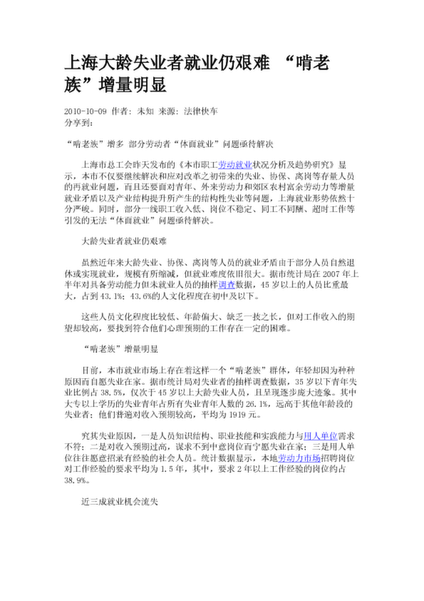 上海大齡失業(yè)者就業(yè)仍艱難 “啃老族”增量明顯
