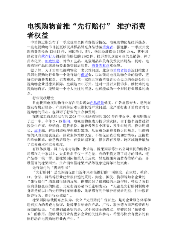 電視購物首推“先行賠付” 維護(hù)消費(fèi)者權(quán)益