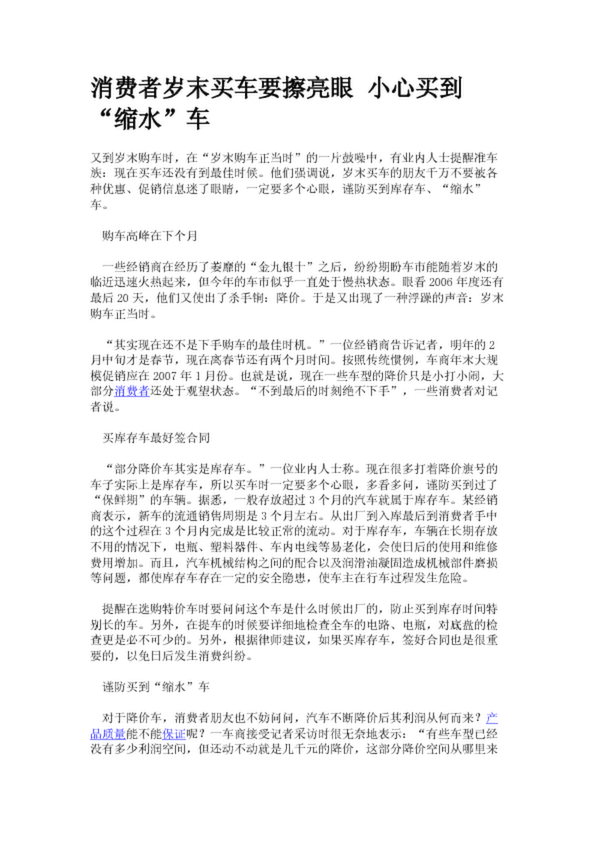 消費(fèi)者歲末買車要擦亮眼 小心買到“縮水”車