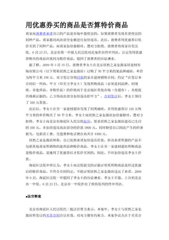 用優(yōu)惠券買的商品是否算特價商品
