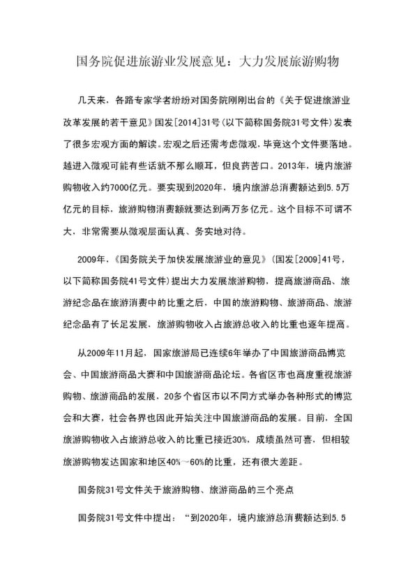 國務院促進旅游業(yè)發(fā)展意見:大力發(fā)展旅游購物