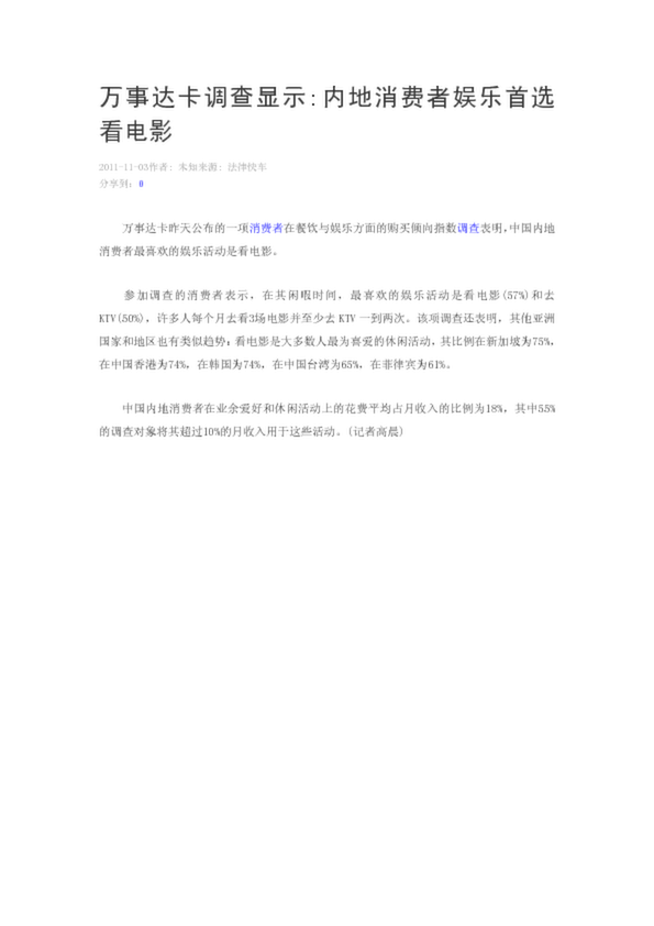 萬事達(dá)卡調(diào)查顯示內(nèi)地消費(fèi)者娛樂首選看電影