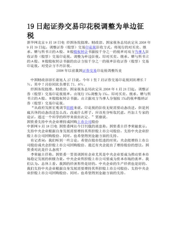 19日起證券交易印花稅調(diào)整為單邊征稅