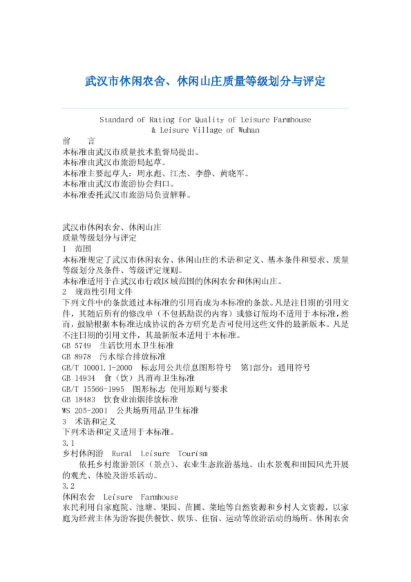 武漢市休閑農(nóng)舍、休閑山莊質(zhì)量等級劃分與評定
