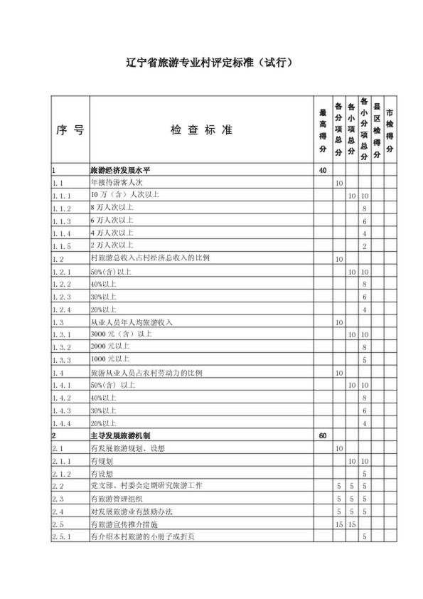 遼寧省旅游專業(yè)村評定標(biāo)準(zhǔn)(試行)
