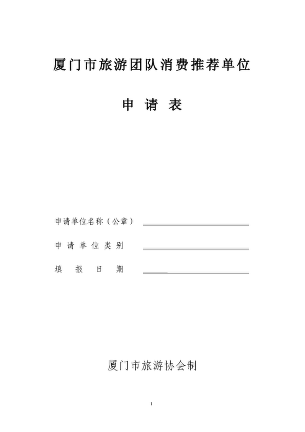 廈門旅游團隊消費推薦單位申請表(50.00KB)