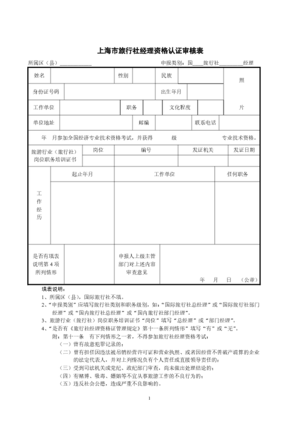 上海市旅行社經(jīng)理資格認(rèn)證審核表
