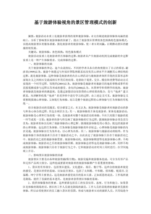 基于旅游體驗(yàn)視角的景區(qū)管理模式的創(chuàng)新