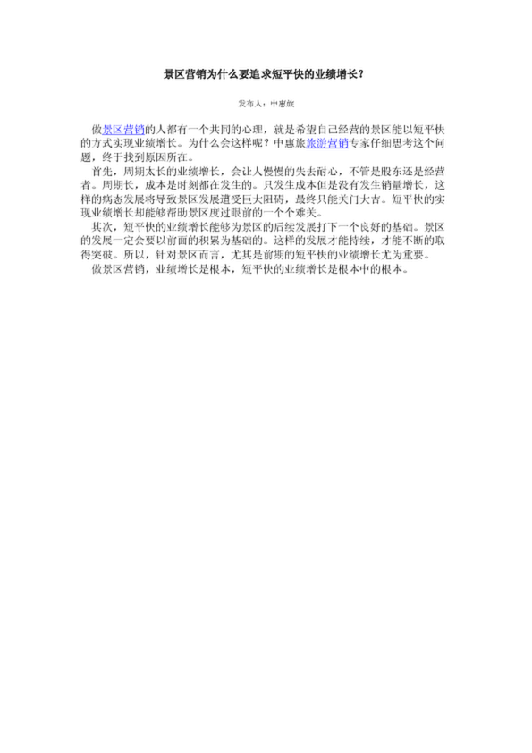 景區(qū)營銷為什么要追求短平快的業(yè)績增長?