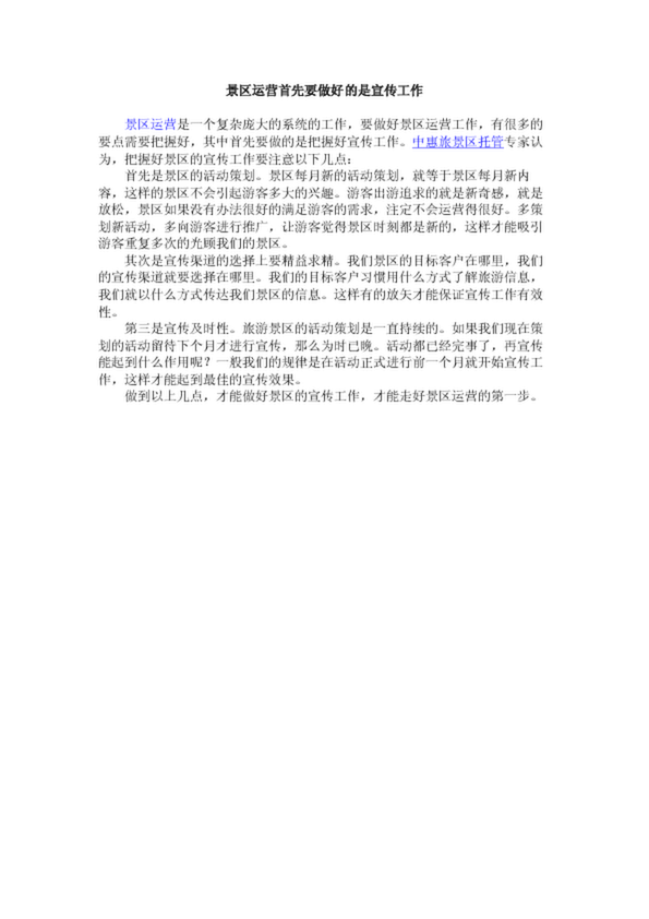 景區(qū)運營首先要做好的是宣傳工作