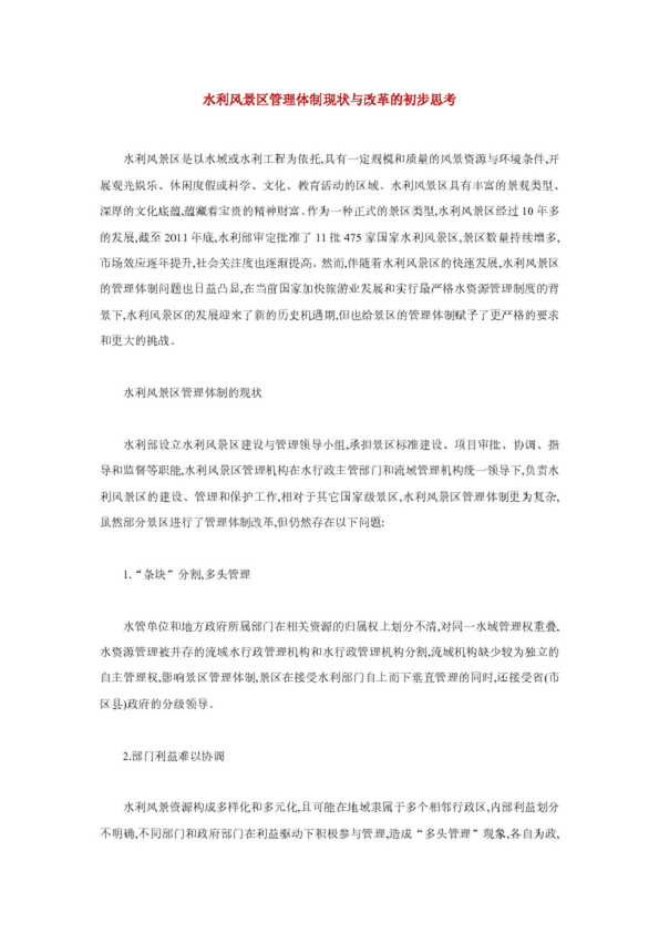 水利風景區(qū)管理體制現(xiàn)狀與改革的初步思考