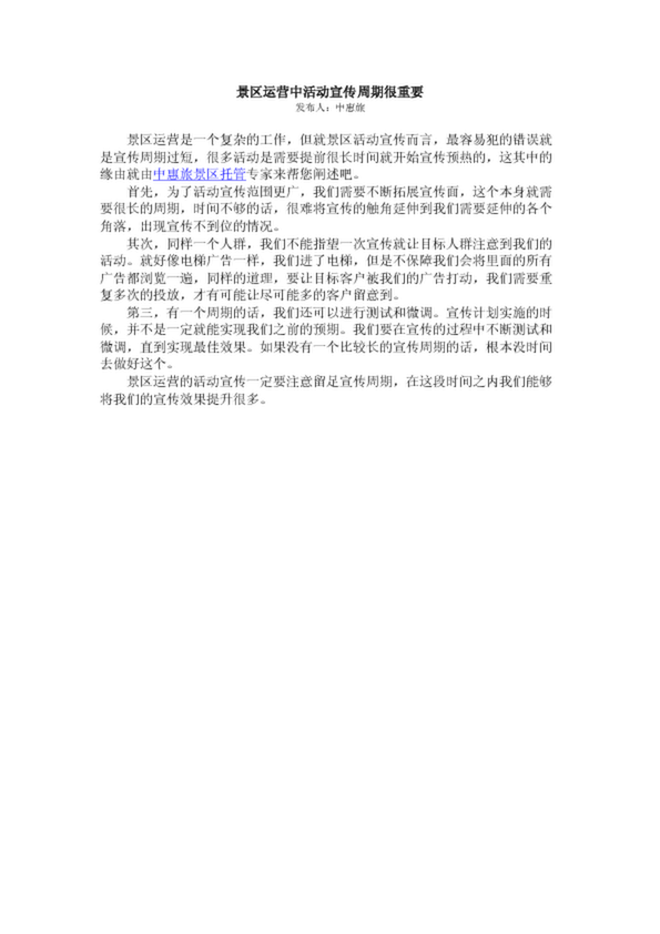 景區(qū)運(yùn)營(yíng)中活動(dòng)宣傳周期很重要