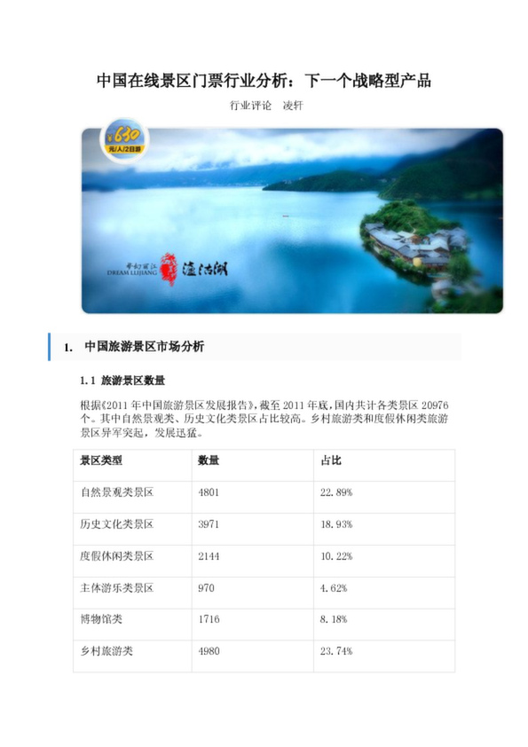 中國(guó)在線景區(qū)門票行業(yè)分析:下一個(gè)戰(zhàn)略型產(chǎn)品