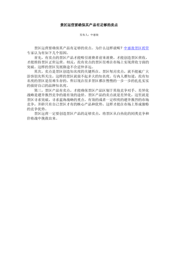 景區(qū)運(yùn)營(yíng)要確保其產(chǎn)品有足夠的賣點(diǎn)