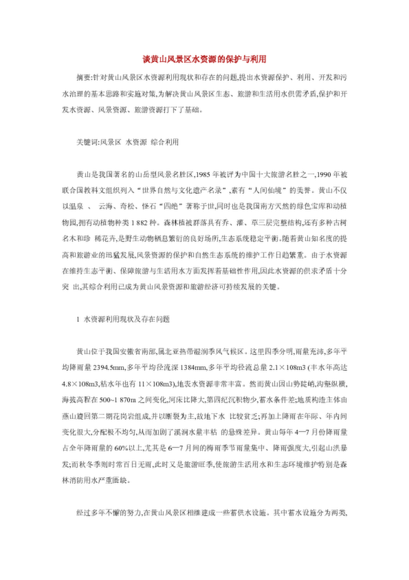 談黃山風(fēng)景區(qū)水資源的保護(hù)與利用(20.00KB)