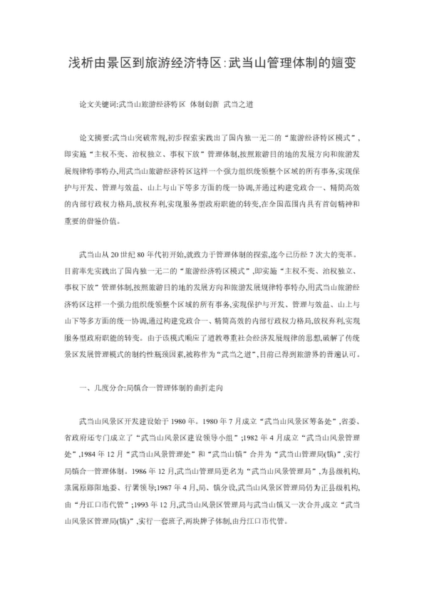 淺析由景區(qū)到旅游經(jīng)濟特區(qū):武當(dāng)山管理體制的嬗變
