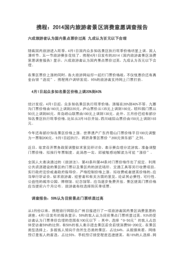 攜程:2014國內(nèi)旅游者景區(qū)消費(fèi)意愿調(diào)查報(bào)告