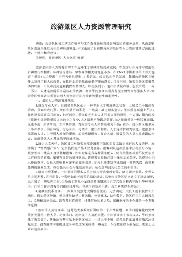 旅游景區(qū)人力資源管理研究