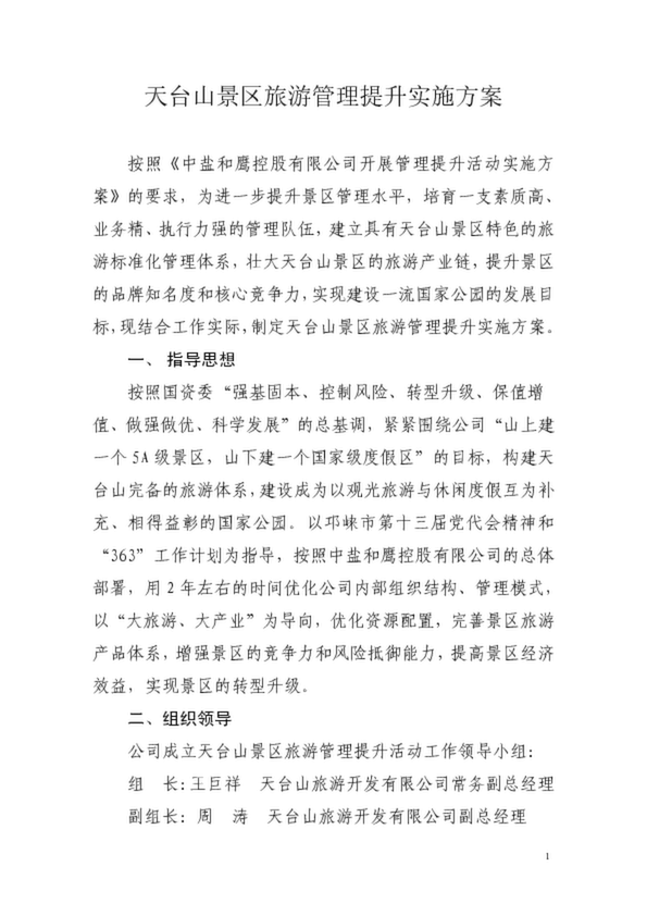 天臺山景區(qū)旅游管理提升實(shí)施方案