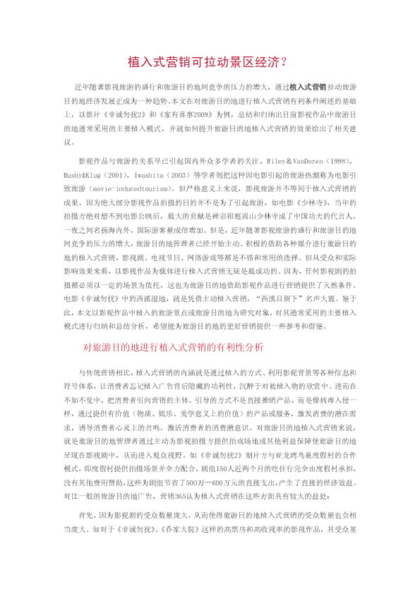 植入式營銷可拉動景區(qū)經(jīng)濟(jì)?