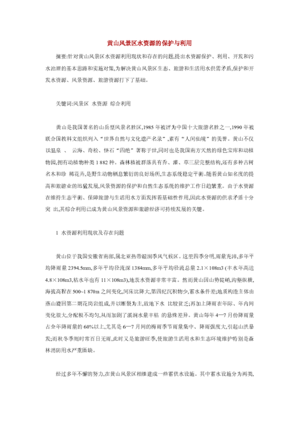 黃山風景區(qū)水資源的保護與利用