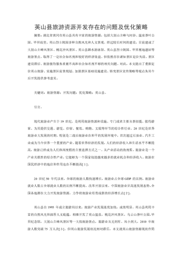 英山縣旅游資源開(kāi)發(fā)存在的問(wèn)題及優(yōu)化策略