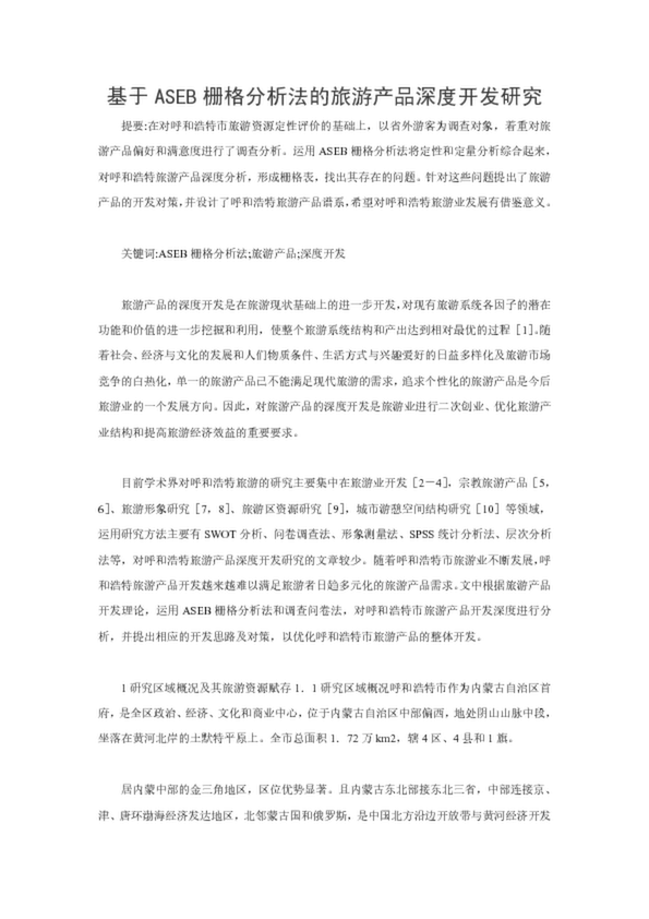 基于ASEB柵格分析法的旅游產(chǎn)品深度開發(fā)研究