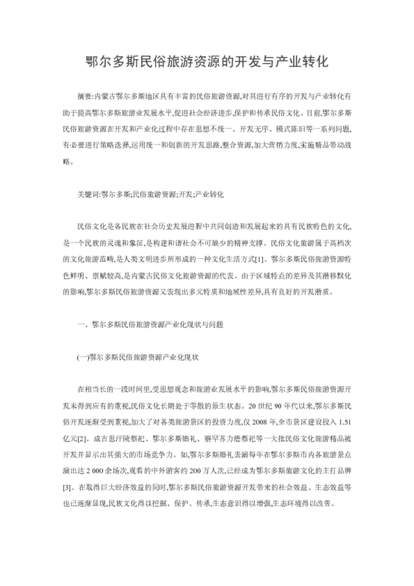 鄂爾多斯民俗旅游資源的開發(fā)與產(chǎn)業(yè)轉(zhuǎn)化