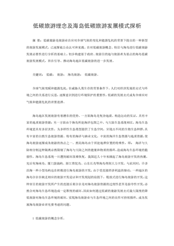 低碳旅游理念及海島低碳旅游發(fā)展模式探析